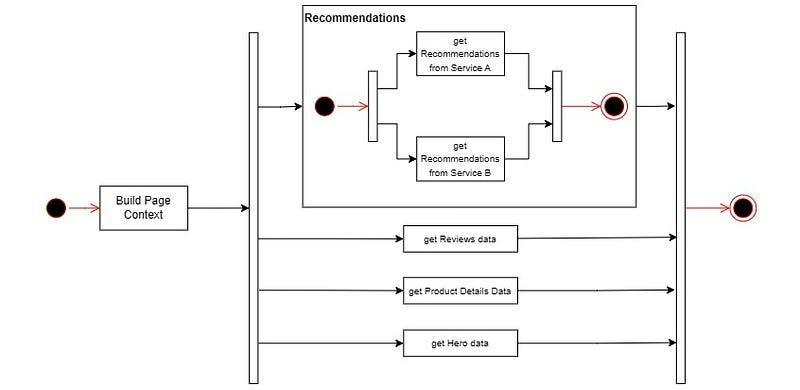 Представьте, что у нас есть приложение BFF (Back-end для Front-end). Это приложение взаимодействует с различными поставщиками данных, имеющими информацию о странице, агрегирует эти данные и возвращает их клиенту (приложение FE).