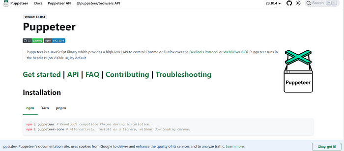 Puppeteer — это мощная библиотека JavaScript, которая автоматизирует задачи Chrome и Firefox, такие как создание скриншотов, генерация PDF-файлов и выполнение тестов производительности.