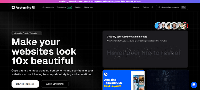 Aceternity UI создана для придания сайтам потрясающей визуальной привлекательности. Эта библиотека предлагает компоненты премиум-класса, такие как 3D-эффекты, анимация и интерактивные элементы, которые поднимают веб-дизайн на новую высоту.