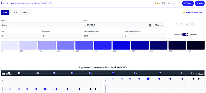 • Что это за инструмент: Tints.dev — инструмент цветовой палитры для создания доступных цветовых тонов и оттенков.