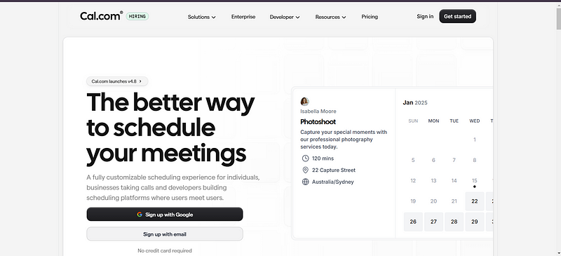 Универсальная альтернатива Calendly, cal.com идеально подходит для самостоятельного создания расписаний.