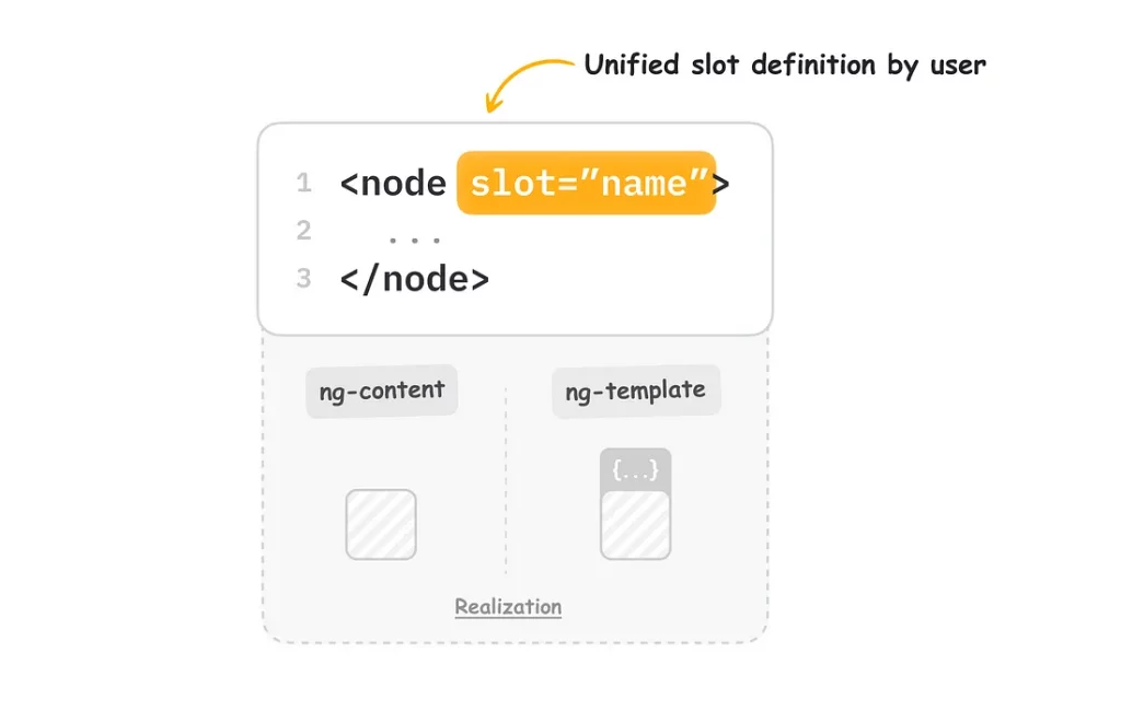 Важно отметить, что в примерах я использую селектор slot-* без каких-либо префиксов. Однако при разработке системы стоит учитывать префикс, чтобы избежать конфликтов с нативным атрибутом slot. Например, в Vue используется именование v-slot (возможно, когда-нибудь мы увидим ng-slot «из коробки» в Angular?).