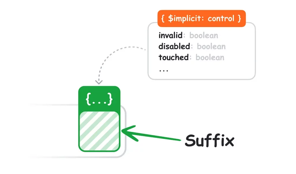 Теперь разработчик может определить слот #suffix и получить доступ к данным из контекста с помощью let-*: