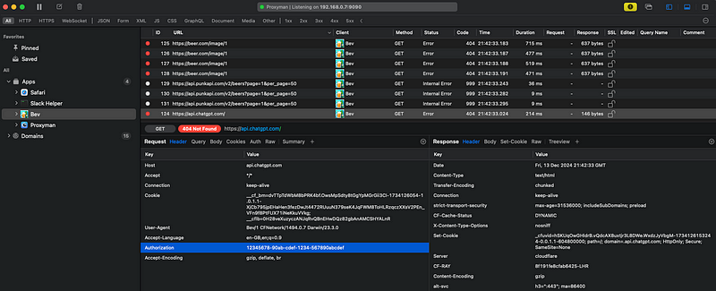 Бесплатные инструменты вроде Proxyman (или Charles Proxy для опытных пользователей) позволят вам просмотреть весь трафик, входящий и исходящий из приложения или сайта.