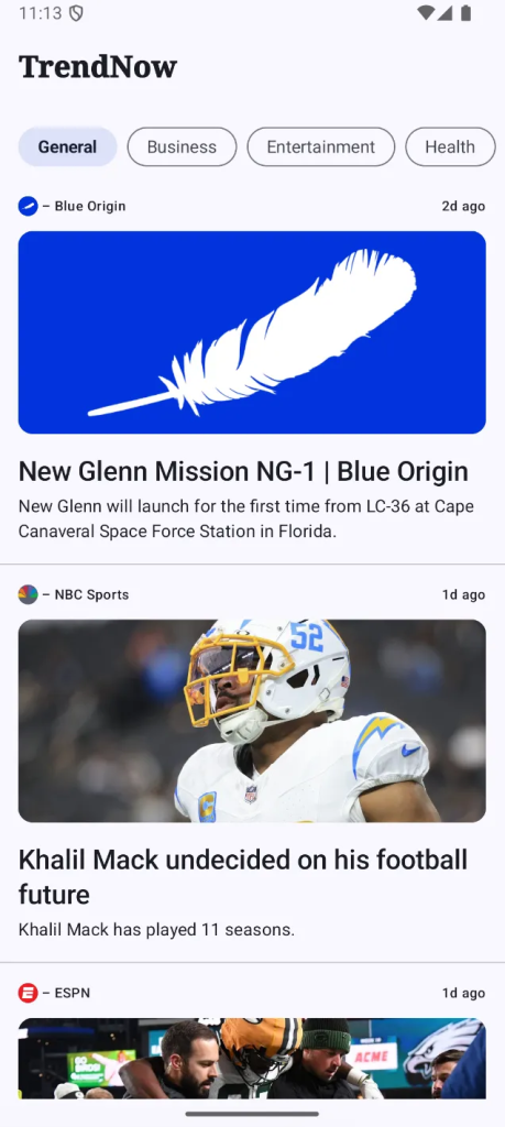 • Изменить поток NewsScreen и получать трендовые новости на основе выбранной темы.