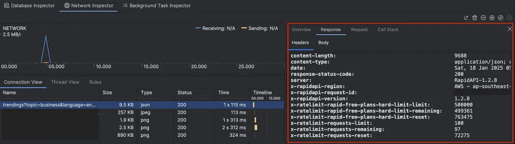 По заголовку ответа с Cache-Control. Проверим заголовок ответа, возвращенного с rapidapi.com, с помощью Android Studio Network Inspector.