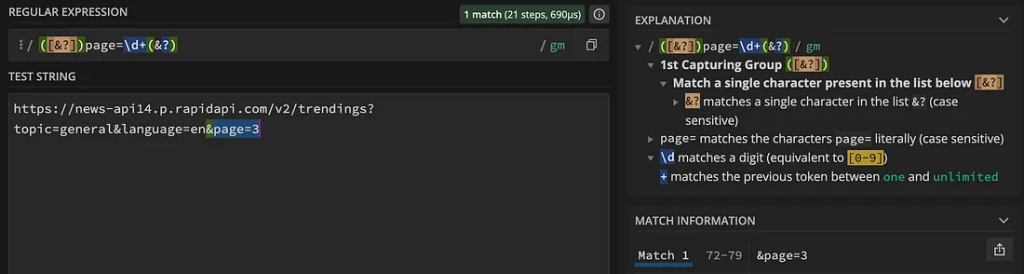 • parentUrl: URL без параметров запроса page, например https://news-api14.p.rapidapi.com/v2/trendings?topic=general&language=en.