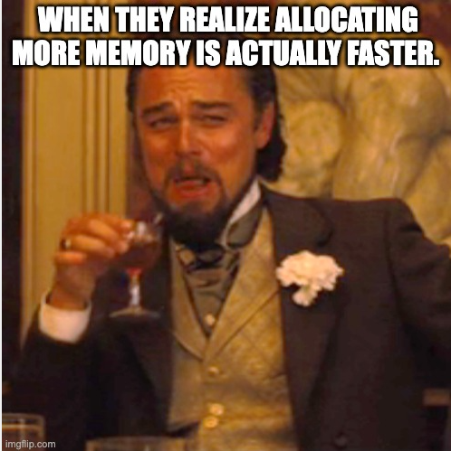 Когда понял, что, выделяя больше памяти, на самом деле ускоряешься