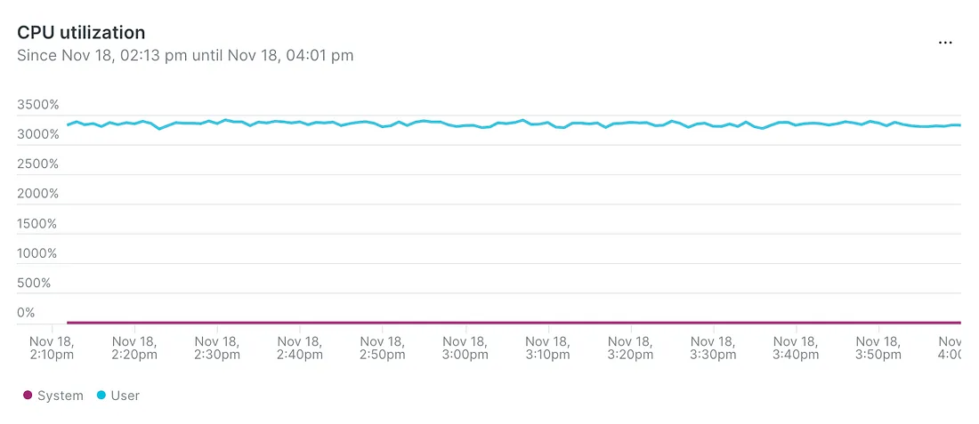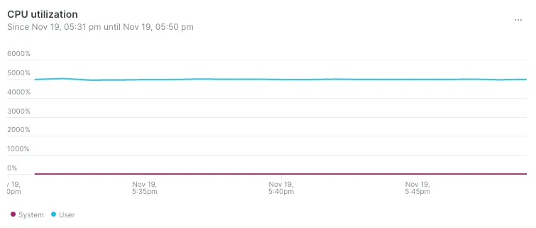 • Загрузка процессора увеличилась с 3000 до 5000 %:
