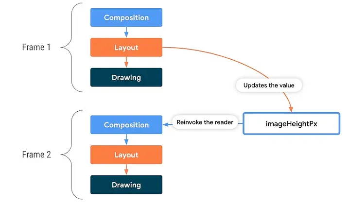 composable: рекомпозиция выполняется на функциональном уровне, при этом в Compose повторно вызываются соответствующие функцииcomposableс новыми данными. Чтобы избежать лишних перерисовок, Compose по максимуму переиспользуется из предыдущей композиции.
