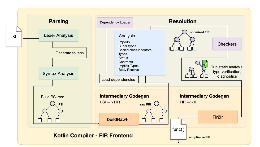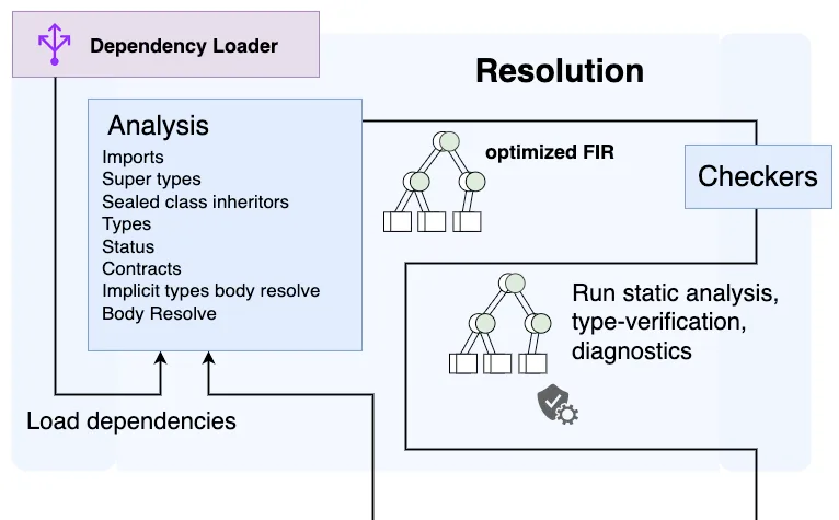 Внимание: возможна путаница между частями этапов компиляции и Analysis API, который не совсем то же, что конвейер компиляции, хоть и связан с ним. Продолжаю прорабатывать это, особенно с этапом разрешения. Но работа компилятора изучается при его тестировании, хотя концепции Analysis API более продвинуты. Вот документация по Analysis API.