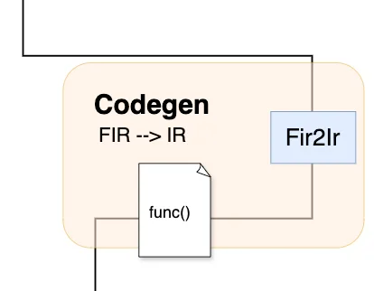Когда этим RawFIR пройден этап разрешения, FIR преобразуется в промежуточное представление бэкенда, которое становится входными данными для бэкенда.