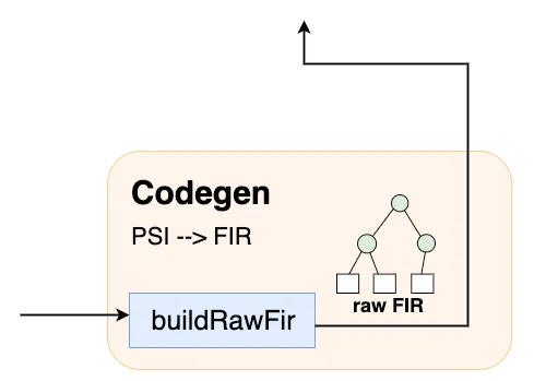 После того как завершен анализ для создания полного FIR, генерируется FIR и компилируется в формат данных IR для бэкенда или плагинов IDE