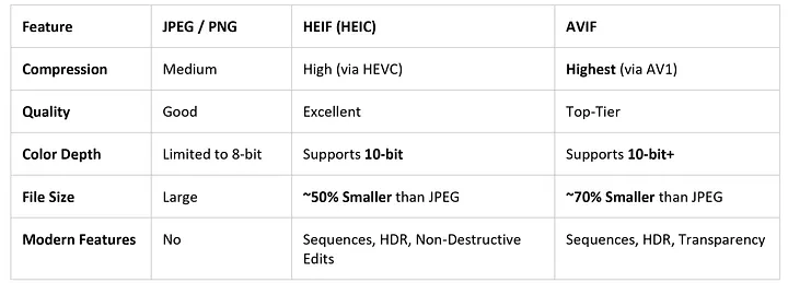 - поддерживать кодирование AVIF (на основе кодека AV1), которое предлагает еще лучшее сжатие, чем HEIF;