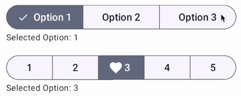 SegmentedButton — это компонент, который позволяет выбрать от двух до пяти вариантов. Она может содержать значки, текст или и то, и другое. Существует два варианта SegmentedButton: с одиночным или множественным выбором. Они реализуются как разные компоненты.