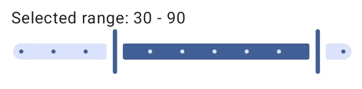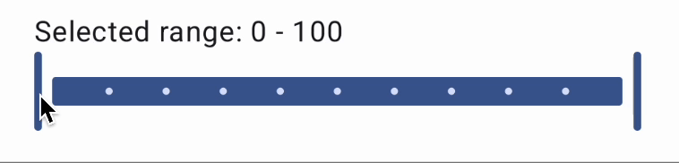 Приведем краткий пример использования RangeSlider. API похож на API обычного Slider. Нужно передать выбранный диапазон значений, допустимый диапазон, определяющий минимальное и максимальное значение, и количество шагов. В этом примере у нас диапазон от 1 до 100 с 9 шагами (плюс один, который всегда присутствует); это означает, что каждый шаг представляет значение 10.