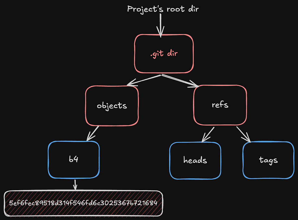 Теперь первые два символа из 40-значного хеша становятся каталогом внутри git/objects, а следующие 38 символов  —  названием сжатого файла из проекта.