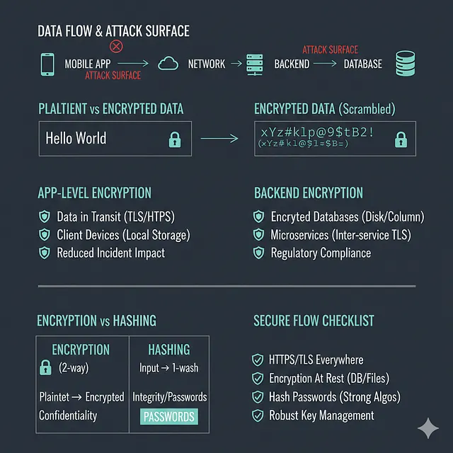 Риск не является гипотетическим. Любой пункт в этом потоке — сетевой транзит, локальное хранилище, логи или базы данных — может стать пространством для атаки. Без шифрования единичный случай перехвата данных или взлома системы безопасности может привести к раскрытию информации, находящейся в виде открытого текста.