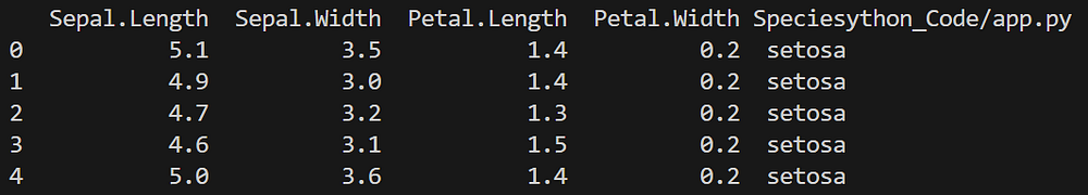 Этим фрагментом кода загружается набор данных Iris и выводятся начальные строки, создается первое представление о данных.