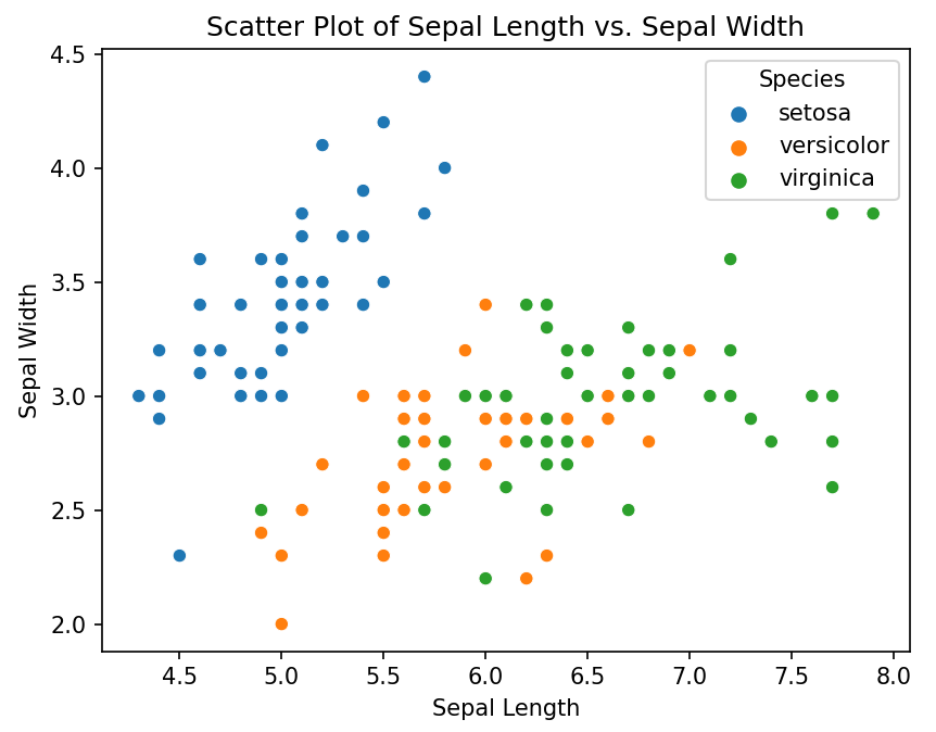 plt.title('Scatter Plot of Sepal Length vs. Sepal Width')