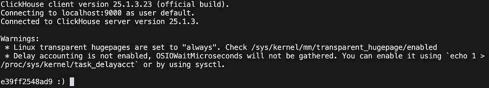 docker exec -it clickhouse-server clickhouse-client