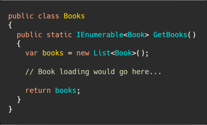 По ходу статьи мы будем расширять метод для получения информации о книгах, а пока что создадим статический метод, который формирует список книг.
